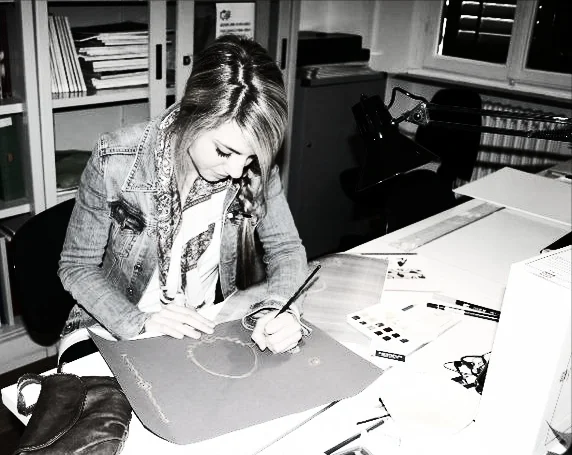 Christine, hand rendering designs for a jewelry collection in Florence, Italy.